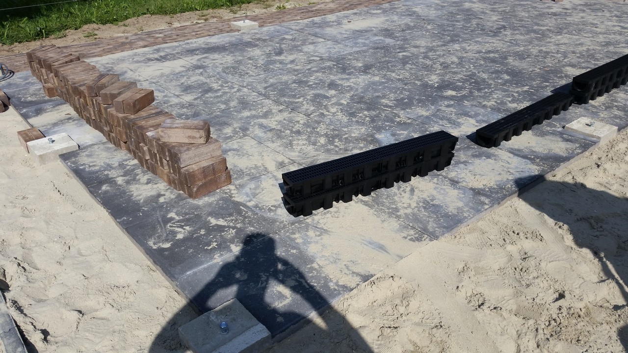 Bestrating voor (onder) overkapping, incl. de basis voor de nog te realiseren overkapping.