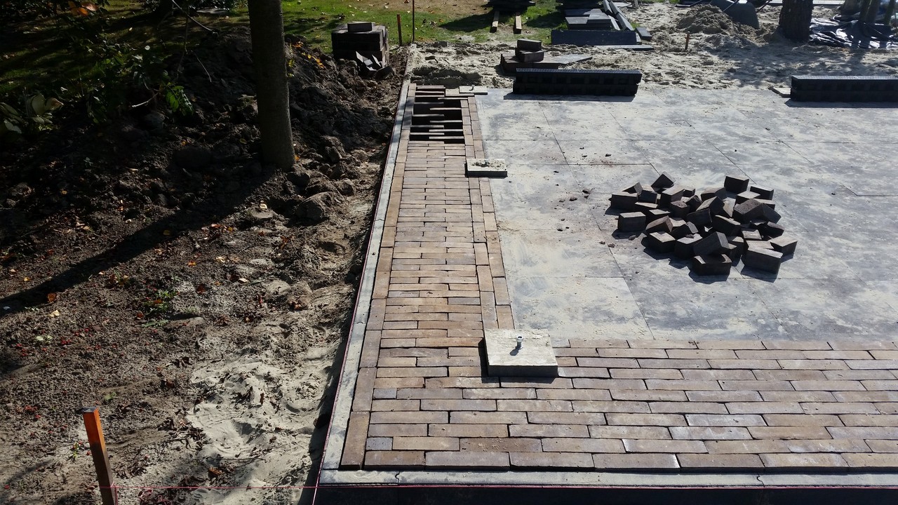 Rondom de woning nieuwe betonklinkers