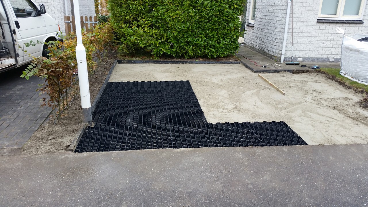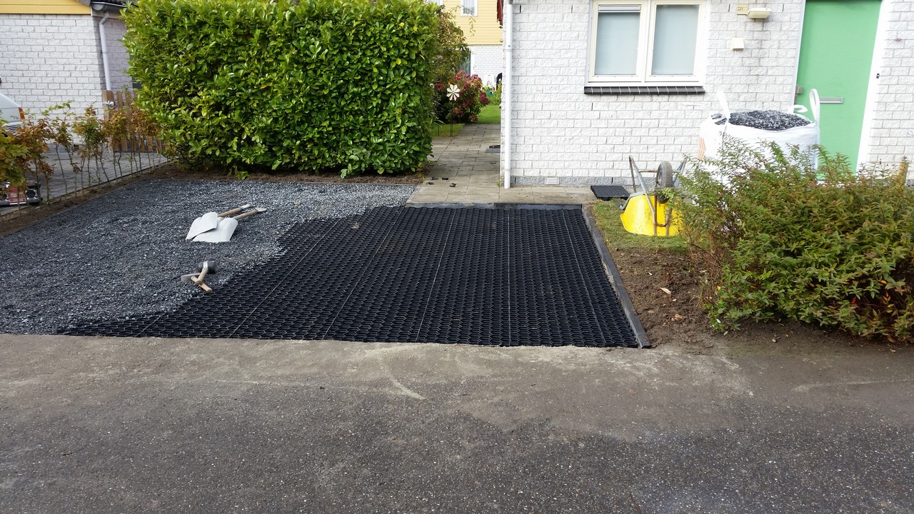 Oprit vernieuwd met matten en split